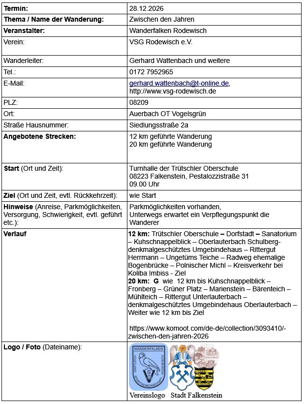 Zwischen den Jahren 28.12.2026 in Falkenstein
